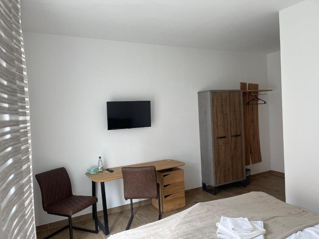 Alle Zimmer in der Pension verfügen über einen Schreibtisch, einen Flachbild-TV, ein eigenes Bad, Bettwäsche, Handtücher und eine Terrasse mit Gartenblick. Ebenfalls verfügen alle Zimmer über einen eigenen Kleiderschrank.